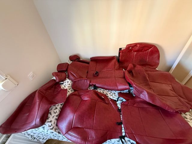 Juego de fundas de cuero para asientos de coche. Dale un nuevo aspecto a tu vehículo. - Material: Cuero. - Color: Rojo.