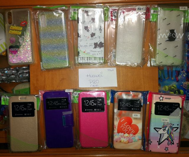 Fundas de móvil Huawei P20 2018 (no Pro) 5 de libro - 2 euros cada una 3 de silicona - 1 euro cada una 1 de brillo más dura - 1'50 euros 1 de líquido con brillo - 2'50 euros