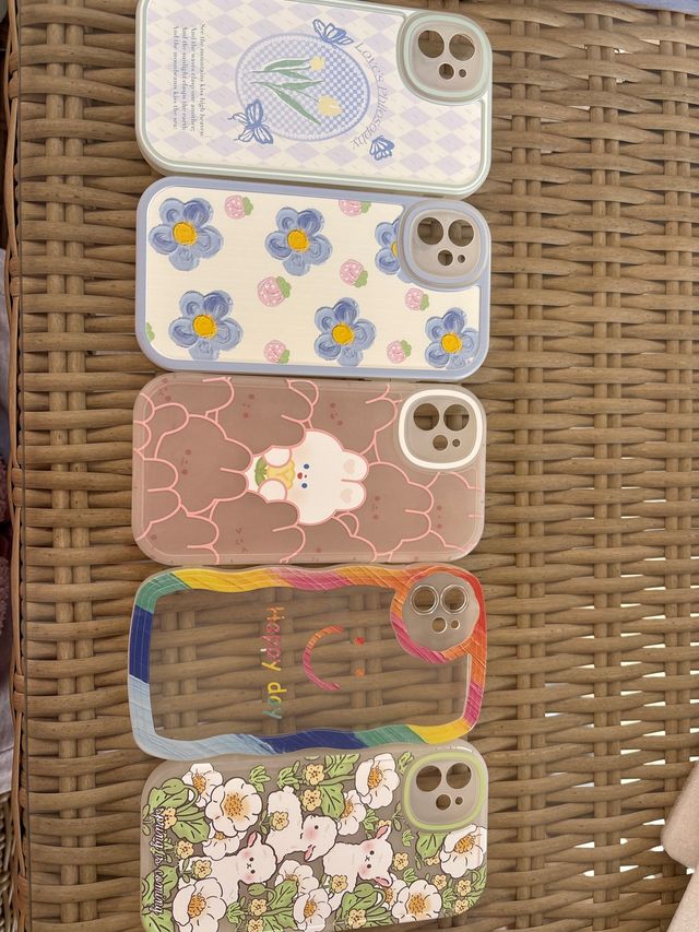 Detalles del productoConjunto de cinco fundas para iPhone 11 con diferentes diseños.