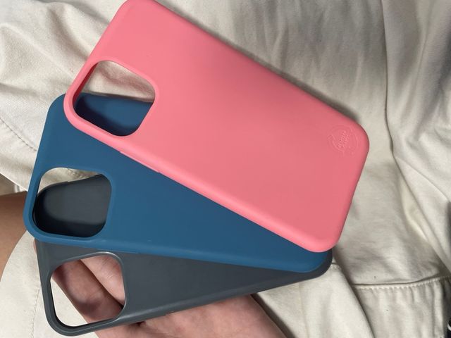 Tres fundas para I phone 11 pro en diferentes colores - Funda gris. - Funda azul. - Funda rosa.