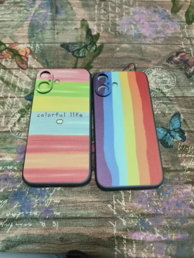 Dos fundas para iPhone con diseño de arcoíris. - Una funda tiene el texto colorful life. - Diseño de rayas verticales y horizontales. 2 fundas 8€ 1 funda 5€