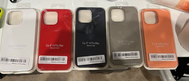 Lote de 5 fundas movil para IPhone 14 Pro Max, por dentro reforzadas textura fieltro para más resistencia.