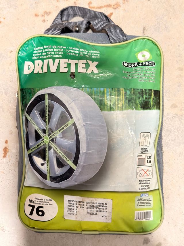Detalles del productoFundas textiles para la nieve de la marca DRIVETEX, talla 76. Incluyen DVD con instrucciones de montaje.