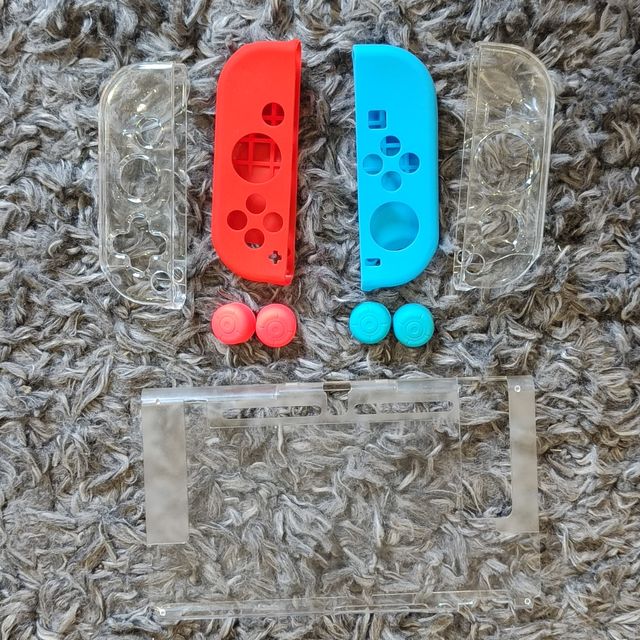 Detalles del productoInclulle 4 fundas para los mandos 2 trasparentes y 2 de goma y 4 protectores de joycon de goma + una funda trasparente para la consola (esa esta usada, está algo rallada pero no está rota)