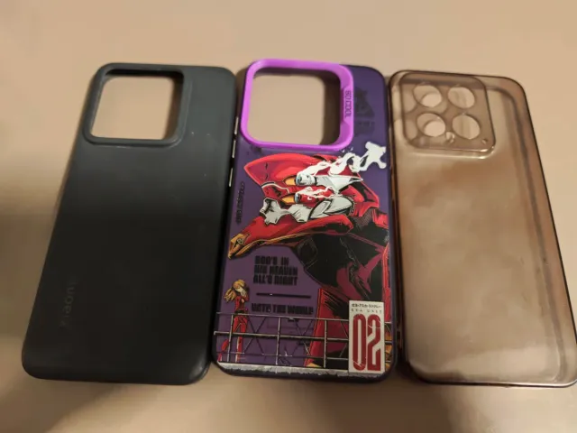 Conjunto de tres fundas para Xiaomi 14. - Funda negra mate. - Funda transparente. - Funda con diseño de Evangelion.