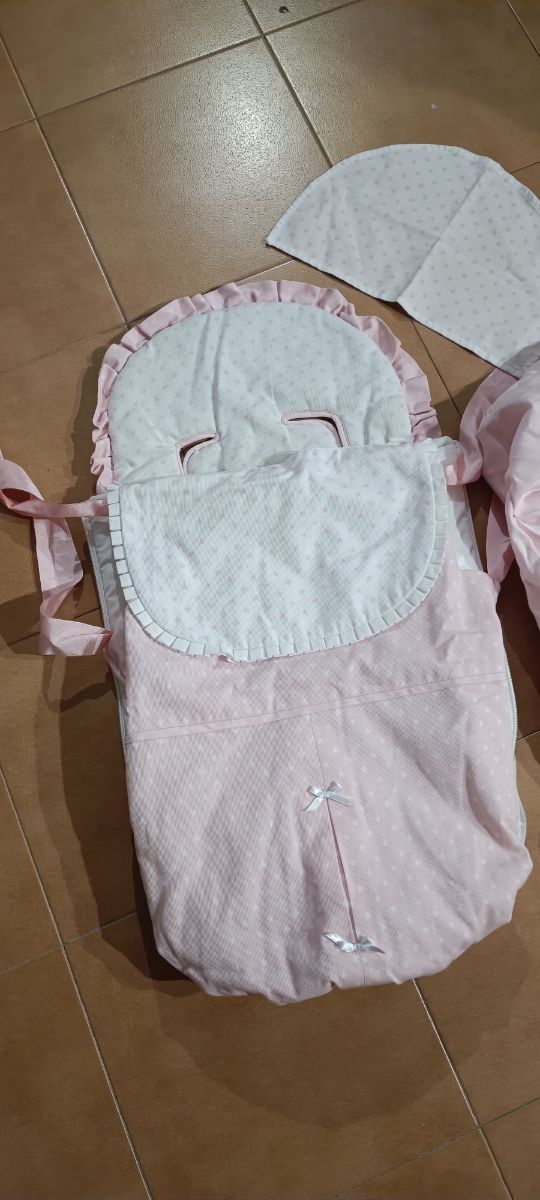 Detalles del productoSaco para carrito paseo únicos realizados a mano. En perfecto estado, se incluye funda rosa capazo Bugaboo y varios reposacabezas para poderlos lavar sin necesidad de que se ensucie el saco. Mejor ver.
