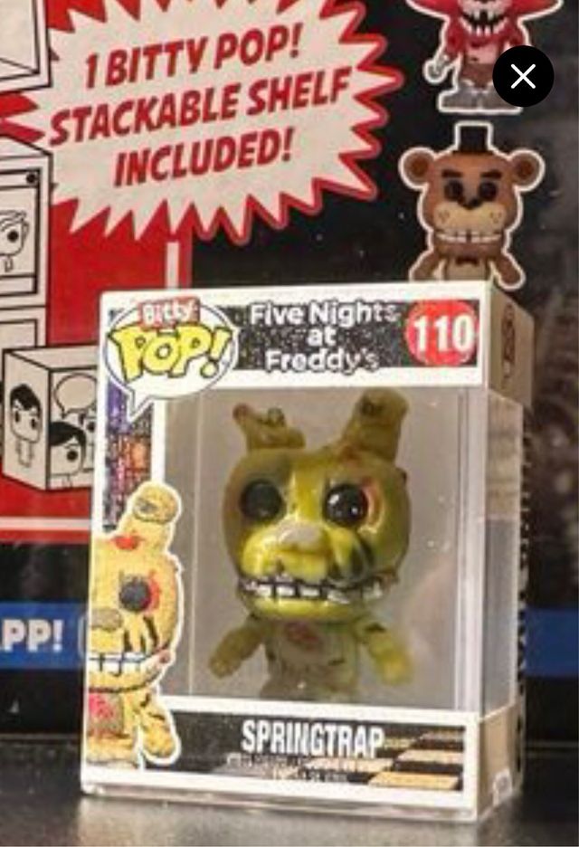 Figura coleccionable Funko Bitty Pop! de Springtrap de Five Nights at Freddy's. - Incluye estante apilable. - Número de figura: 110.