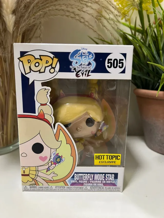 Detalles del productoFigura Funko Pop 505 de Star Butterfly en modo mariposa. Es una figura exclusiva de Hot Topic.