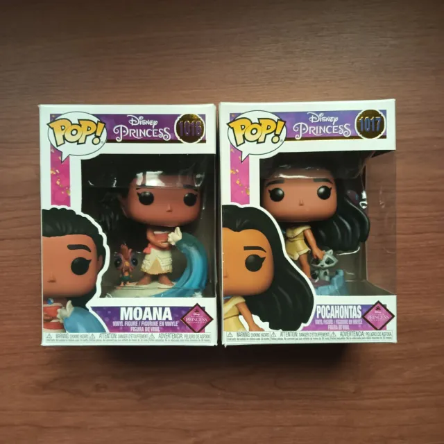 Dos figuras Funko Pop de Disney Princess. - Figura de Pocahontas (Nº 1017). - Figura de Moana (Nº 1016). - Ambas en su caja original.
