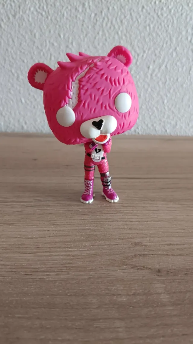 Figura coleccionable Funko Pop del personaje Oso Rosa de Fortnite. No tiene caja. - Diseño detallado del personaje. - Colores vibrantes característicos.