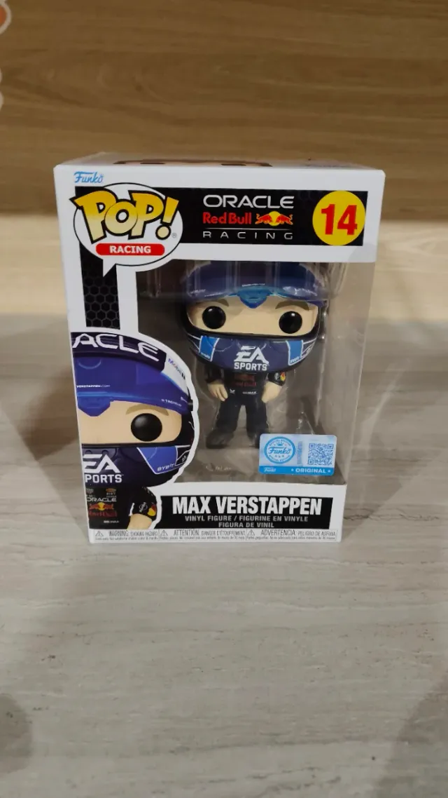 Detalles del productoFigura Funko Pop del piloto Max Verstappen, número 14 de la colección Racing. Edición especial. Envío a partir de marzo, ahora mismo no estoy en España. Se puede reservar hasta entonces.
