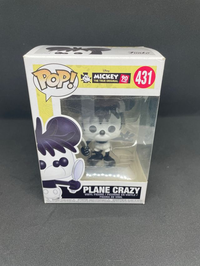 Figura Funko Pop! de Mickey Mouse de la colección Plane Crazy. - Número de figura: 431. - Edición especial por los 90 años de Mickey. - Diseño en blanco y negro.