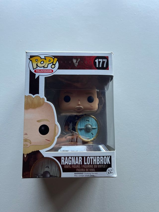Figura Funko Pop de Ragnar Lothbrok de la serie Vikingos. El número de la figura es 177.