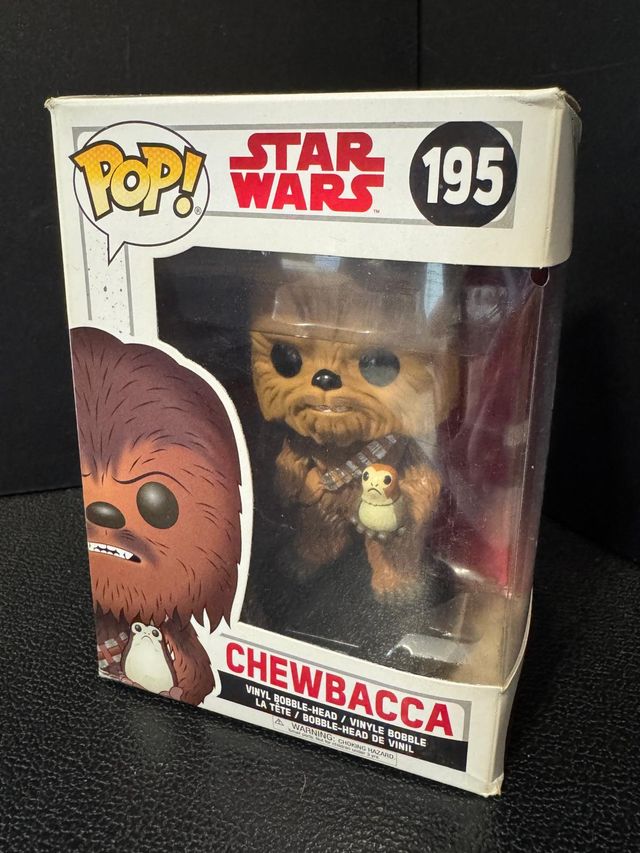 Figura Funko Pop de Chewbacca, número 195 de la saga Star Wars. - Figura de vinilo. - Incluye un Porg.