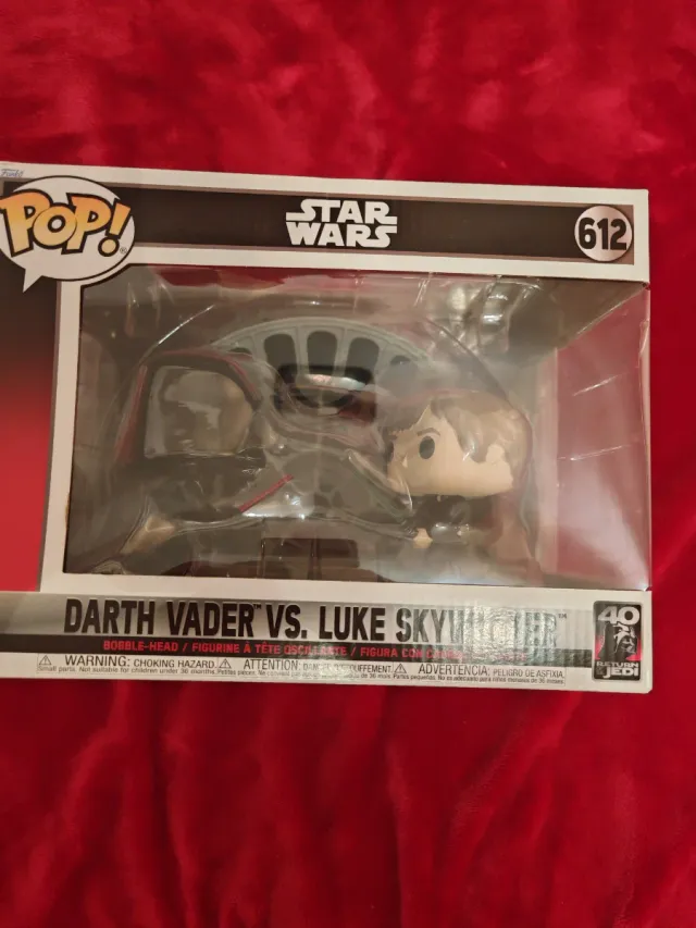 Detalles del productoFigura Funko Pop! de la icónica batalla entre Darth Vader y Luke Skywalker de Star Wars. El número de la figura es 612.