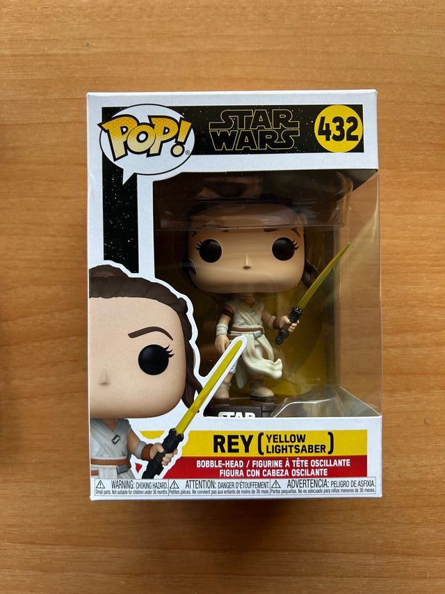 Detalles del productoFigura Funko Pop de Rey con sable de luz amarillo, número 432 de la saga Star Wars.