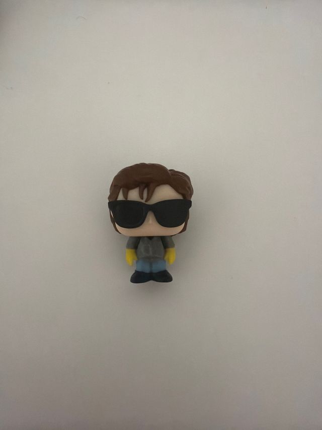 Figura Funko Pop de Steve Harrington de Stranger Things. - Diseño inspirado en el personaje. - Gafas de sol oscuras. - Chaqueta gris y guantes amarillos.