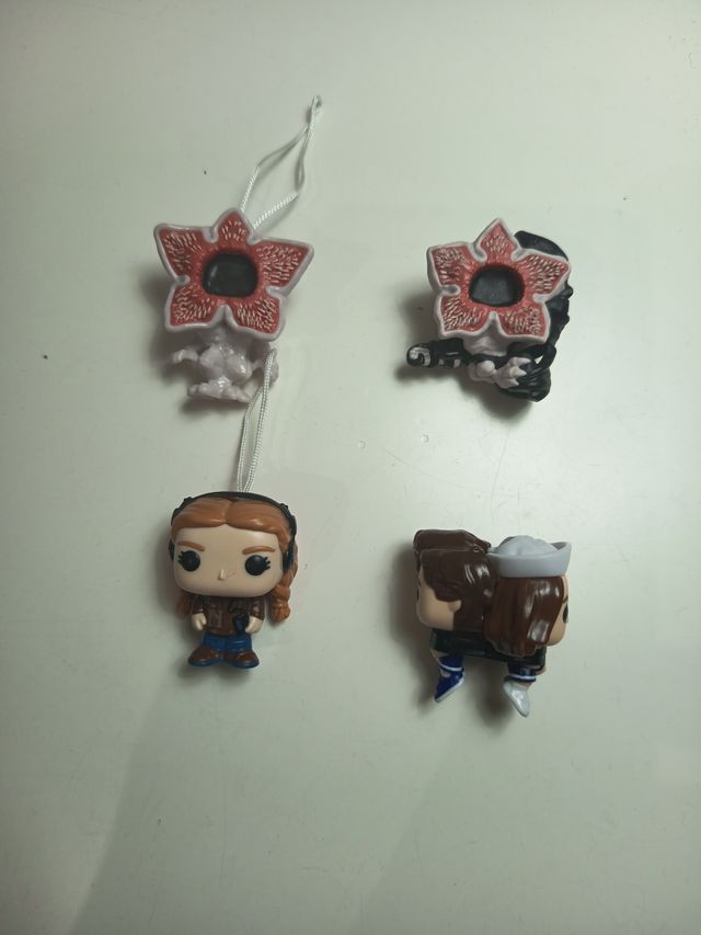 Detalles del productoIntercambio figuras Funko Pop de Stranger Things, provenientes de huevos Kinder. Tengo para intercambiar los cuatro que se ven en la foto, por otros de la misma colección. Me faltan los funkos de Micke, Dustin del mundo real y además Robin de cargador, Once pared roja y el demogorgon con clic. Cambio en mano o envío por wallapop por 1'5 € cada funko.