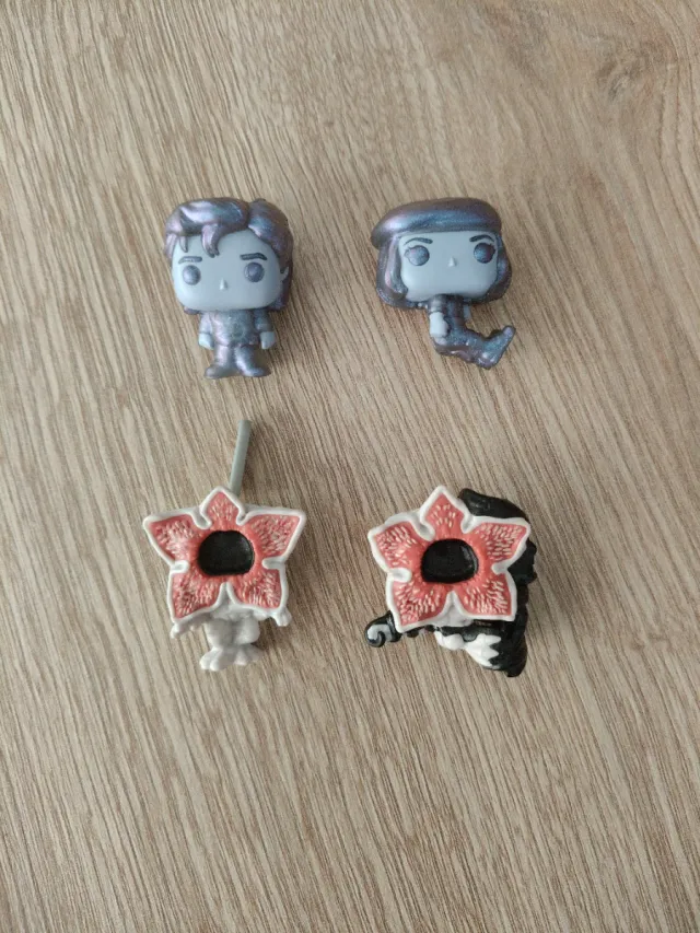 Detalles del productoLote de figuras Funko Pop de Stranger Things, provenientes de huevos Kinder Joy. Incluye dos figuras de personajes y dos cabezas de Demogorgon.