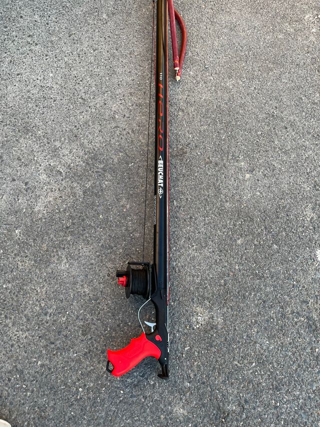 Detalles del productoFusil o arpón de pesca submarina Beuchat Hero 90 en color negro y rojo. Incluye carrete.