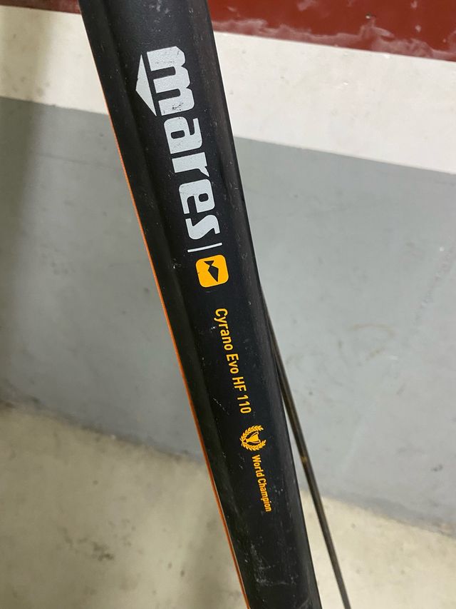 Detalles del productoSe vende fusil de pesca submarina Mares Cyrano Evo HF 110, en buen estado. Tiros muy largos sin retroceso, con reductor de potencia para poder pescar en agujero...
