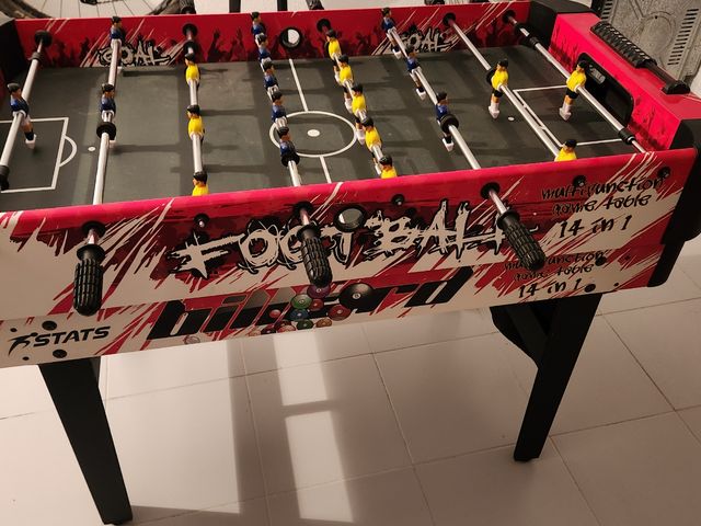 Detalles del productoEste es un futbolín 14 en 1 diseñado especialmente para niñ@s. Es una mesa de juegos muy completa que permite jugar a 14 juegos diferentes sin ocupar mucho espacio. Entre los juegos que incluye están el futbolín, el billar, el ping pong, el air hockey, el ajedrez, las damas, el backgammon, el blackjack, el tres en raya, y varios más.