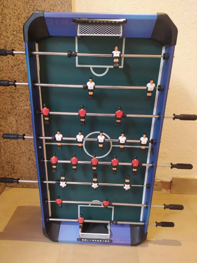 Detalles del productoFutbolín de mesa con diseño deportivo en color azul.