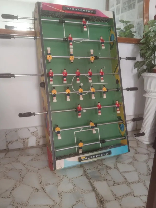 Futbolín de mesa para niños, ideal para horas de diversión. - Diseño colorido y atractivo. - Barras con jugadores. - Marcador numérico.