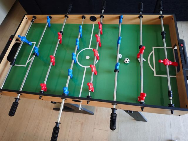 Futbolín/billar 11 en 1 nuevo casi sin usar. A estado en casa montado pero no lo ha usado casi nunca. medidas: Alto 81,60cm Largo 94cm Ancho 123,60cm
