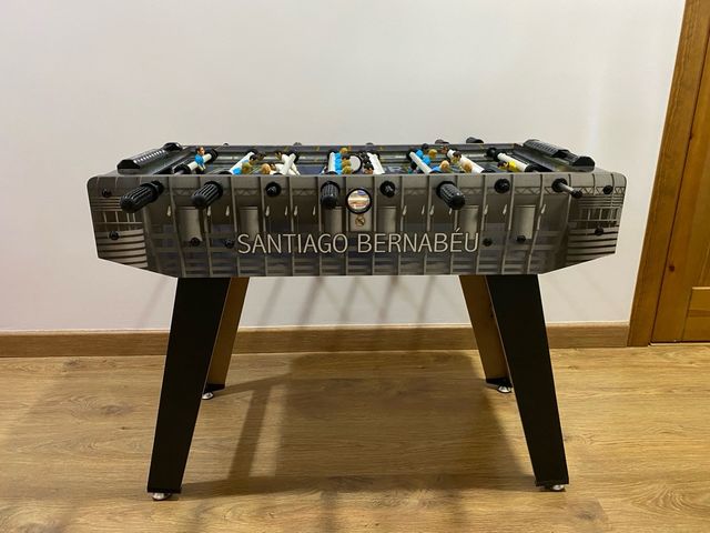 Detalles del productoEdición exclusiva. Futbolín con diseño del estadio Santiago Bernabéu y jugadores personalizados del Real Madrid.