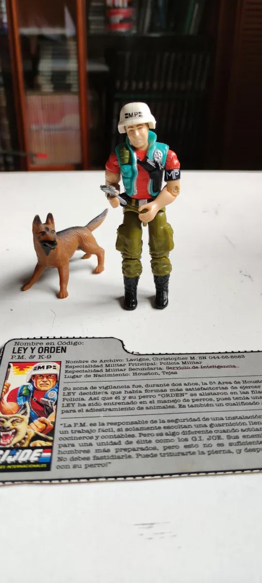 Detalles del productoFigura de acción G.I. Joe Ley y Orden de 1987, con su perro Orden.