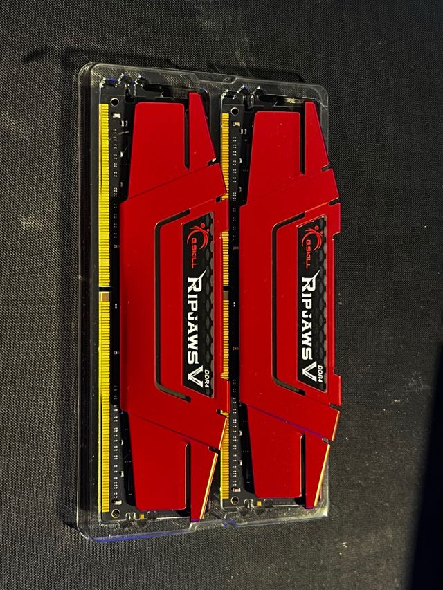 Memoria RAM G.Skill Ripjaws V en color rojo. - Kit de 2 módulos de memoria. - Tipo DDR4. - Diseño distintivo Ripjaws V.