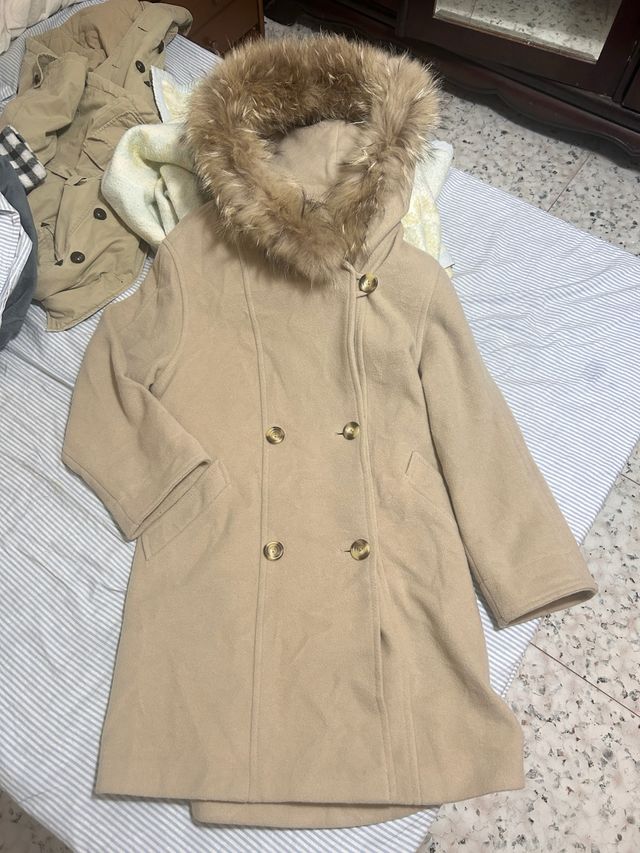 Gabardina beige con capucha y pelo