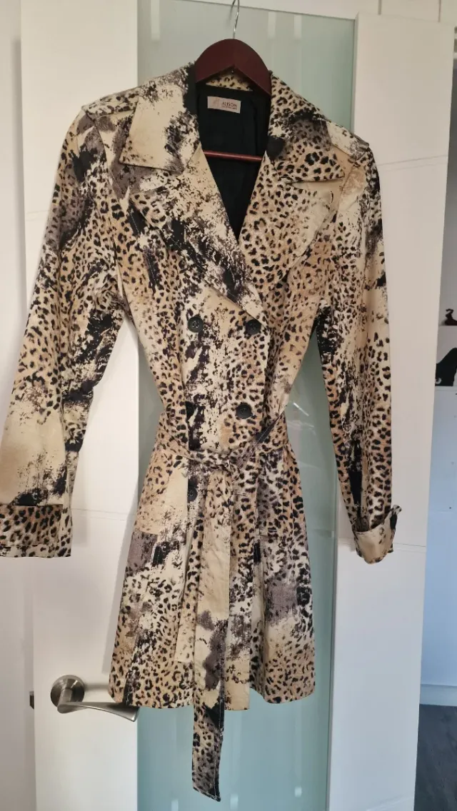 Gabardina beige y negra con estampado