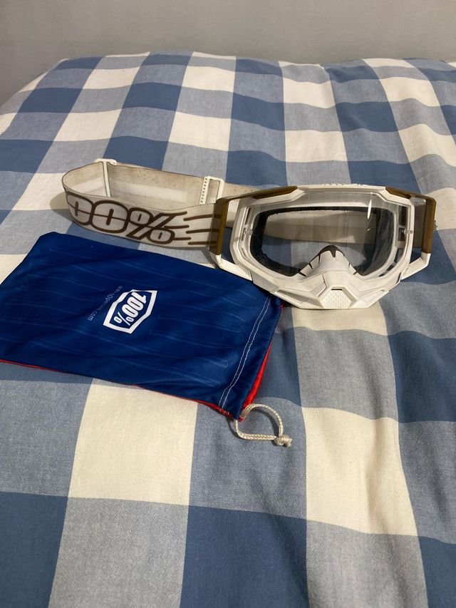 Gafas 100% para motocross o descenso en buenas condiciones. Incluyen bolsa de tela. - Marca: 100% - Color: Blanco y dorado