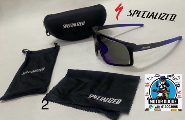 Gafas specialized con cristal fotocromático , silicona en la nariz y en las patillas para que no se deslicen,funda dura con colgante ,funda de gafas de tela y toallita limpia gafas.