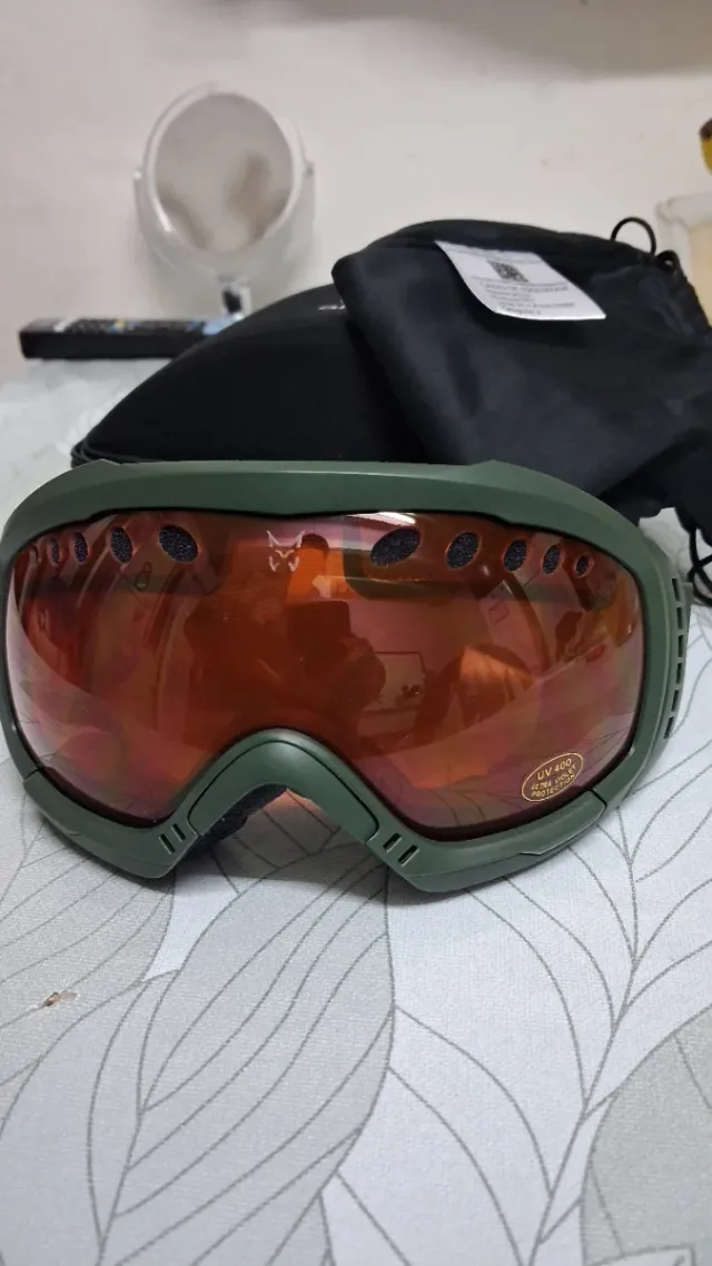 Gafas de esquí de la marca Altus, diseñadas para proteger tus ojos en la montaña. - Lente con protección UV 400. - Montura verde oscuro. - Incluye funda protectora.