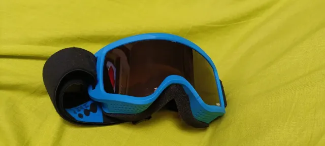 Detalles del productoGafas de esquí de color azul brillante, con lente de espejo y correa ajustable.