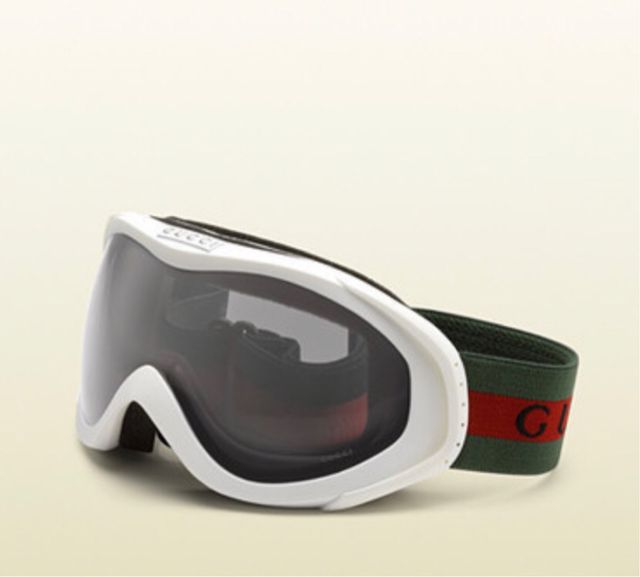 Detalles del productoMontura de color blanco con cinta elástica verde/roja/verde. Lentes dobles espejadas antivaho. Protección 100% UVA/UVB. Modelo GG 1653/S, n.° M00502