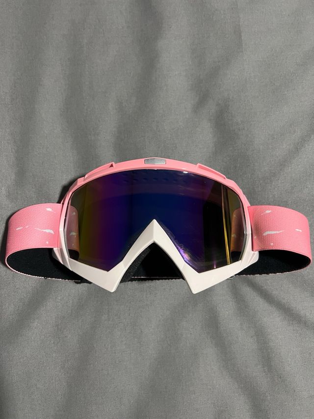 Gafas de esquí o snowboard con un diseño llamativo. - Montura de color rosa. - Correa con estampado. - Lente espejada multicolor. -Nuevas sin estrenar.