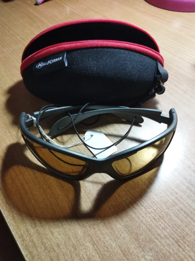 Se venden gafas de pesca con su funda protectora. - Lentes polarizadas . - Funda rígida negra con borde rojo.