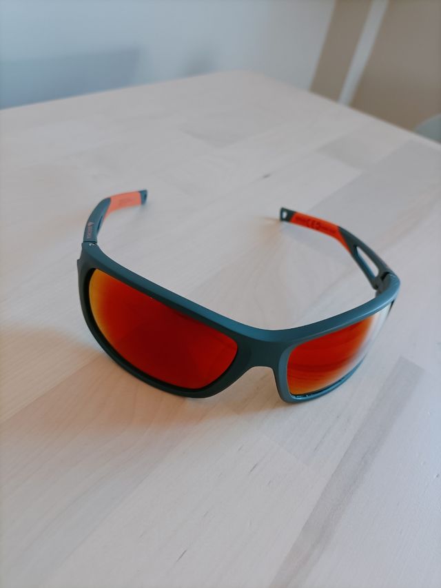 - Lentes con acabado espejo en tono rojizo.