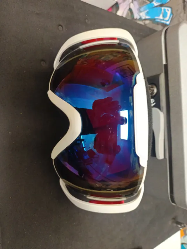 Gafas de snowboard con lente espejada y diseño moderno. Perfectas para disfrutar de la nieve con estilo y protección. - Lente con acabado espejo. - Montura blanca y detalles rojos.