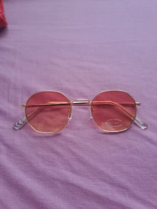 Gafas de sol doradas con lentes rosas