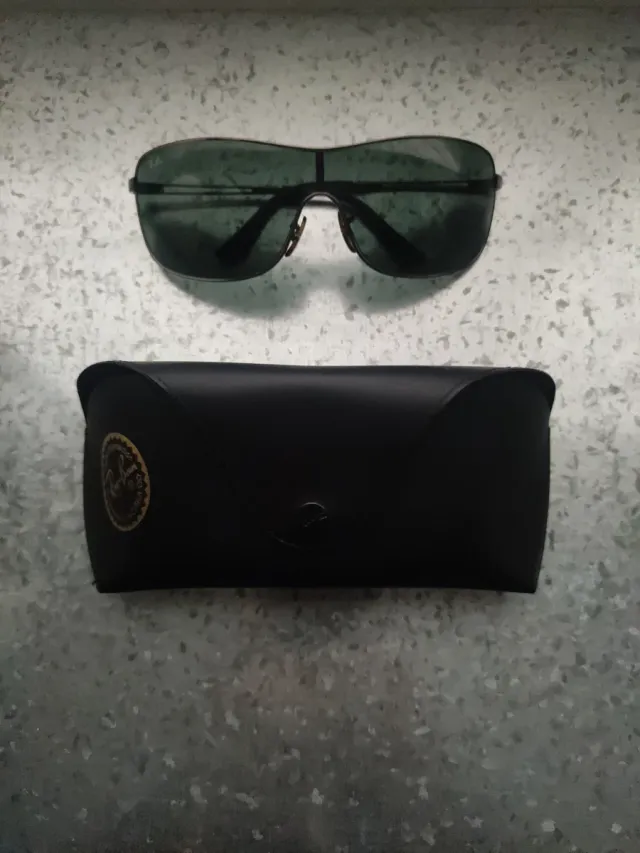 Gafas de sol Ray-Ban - Montura metálica acabado cromado de estilo deportivo. - Lentes oscuras. - Funda protectora incluida.