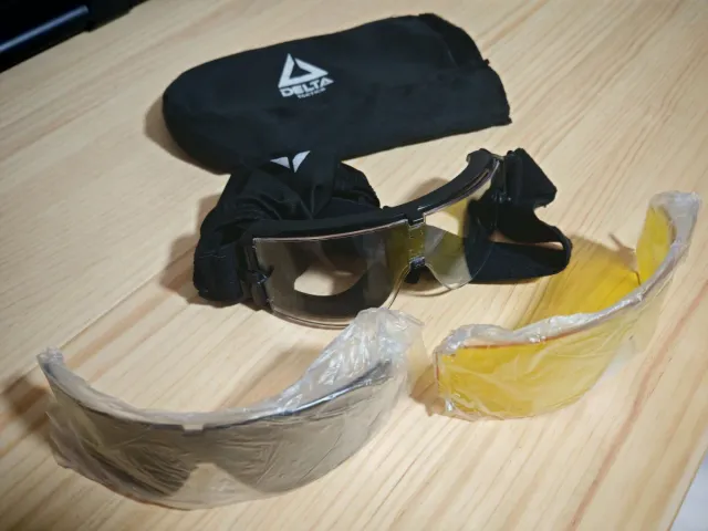 Detalles del productoGafas de ventisca Delta Tactics con lentes intercambiables para airsoft. Incluye funda protectora.