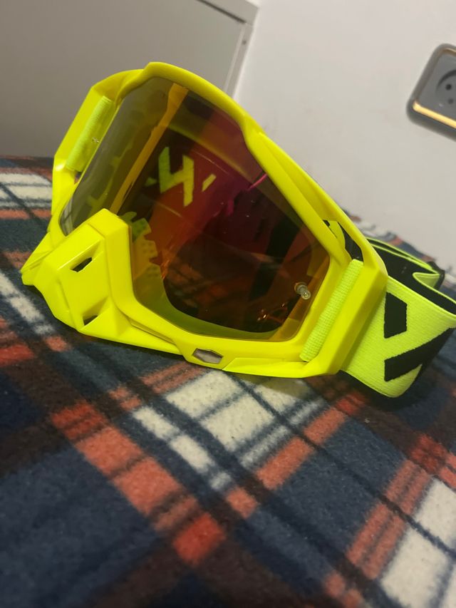 Detalles del productoGafas de protección para motocross o nieve en color amarillo brillante. Perfectas para actividades al aire libre.