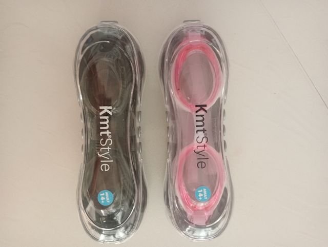 Detalles del productoGafas de natación KmtStyle, dos unidades. Ideales para adultos (14+). Una es negra y la otra rosa. Se encuentran en sus estuches originales. - Para adultos (14+).