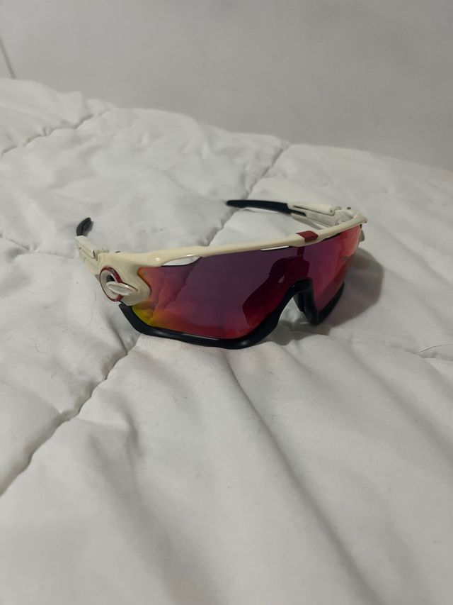 Detalles del productoGafas deportivas Oakley Jawbreaker con lentes espejadas.