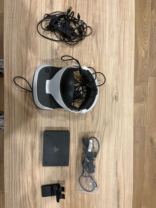 Sistema de realidad virtual Playstation. - Incluye gafas VR. - Incluye unidad de procesamiento. - Incluye cables y adaptadores.